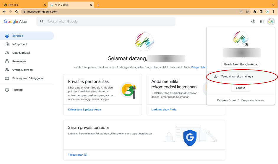 - Jika sebelumnya sudah pernah login akun lain, bisa pilih Akun Google di sebelah kanan atas, lalu pilih Add another account